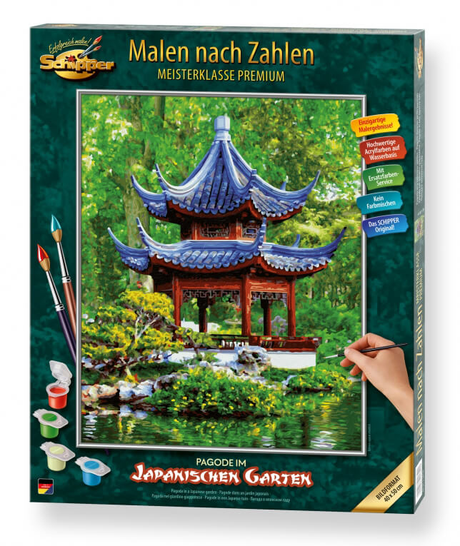Japonská záhrada predstavuje dokonalosť prírody. Je to tiež miesto odpočinku, inšpirácie a meditácie. Pagoda symbolizuje – rovnako ako ostatné prvky dizajnu – súhru rôznych prírodných a obytných priestorov. Cieľom je zoskupiť pozitívne vplyvy na duševné a fyzické zdravie. Životná filozofia Ďalekého východu poskytuje podporu a bezpečnosť v komplexnom svete. Prostredníctvom motívu s harmonicky zladenými tvarmi a farbami sa dostáva do sveta hobby maľby.